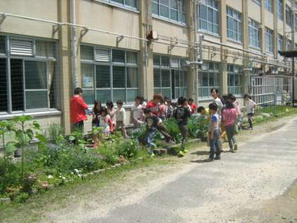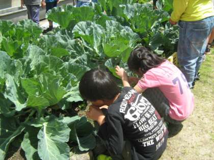 理科の学習でモンシロチョウのたまごを探しました。キャベツの裏がわをよく見てみると、、黄色い色をした小さな小さなたまごがついていました。「先生!見つけました!!」「あった!!!」と,とても嬉しそうに報告をしていた子どもたちでした。初めてたまごを見た子もいたようで,その小ささに驚いていました。これから,そのたまごがどのようにモンシロチョウになっていくのかを観察して調べていきたいと思います。