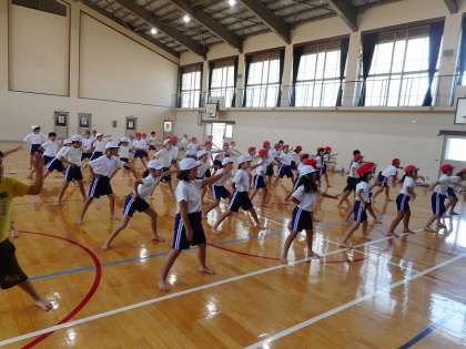 初めて踊るソーラン節に,子どもたちは四苦八苦していましたが,練習が終わるころにはある程度の動きはできるようになっていました。