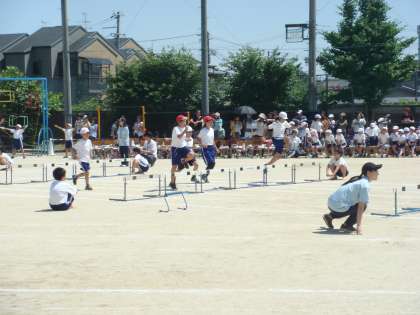 5・6年生の50mハードル走では,リズムよくハードルを飛び越しながら,颯爽と走っていました。高学年,かっこよかったです。