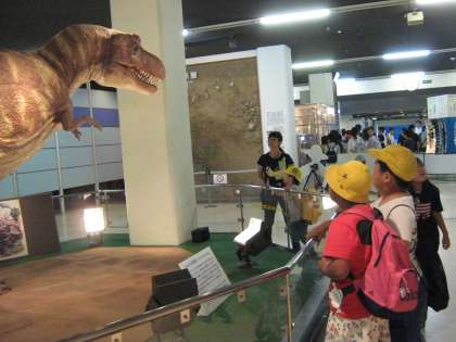 毎年訪れているので,恐竜の骨格が好きでずっと見ていた子,大きな声を出して声の大きさを計る子,強力磁石をつなげて楽しむ子など,それぞれに興味をもって学習していました。