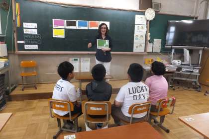 その後,色の表現を教えていただき,みんなお手本に合わせてとても上手に発音し,楽しく学習することができました。