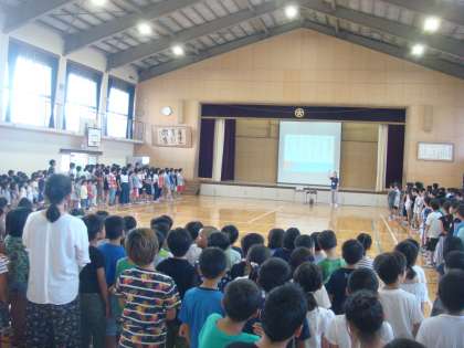 その後,今年度初めての全校合唱をしました。「With You Smile」という曲で,全校の声が一つになりました。今後,ますますきれいな声が響きあっていくのが楽しみです。