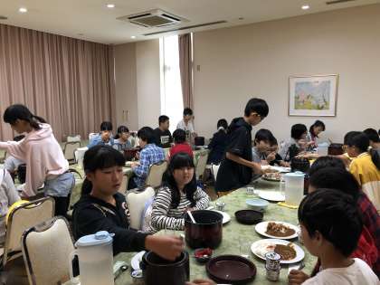 野島断層保存館の見学を終え,昼食の時間です。淡路島の玉ねぎ・肉など淡路島の食材で作ったカレーライスをお腹いっぱい食べました。デザートは淡路島の牛乳から作ったヨーグルトでした。淡路島がつまったご飯を食べ,お腹も心も満たされ,次は,鳴門海峡の渦の道へ向かいます。