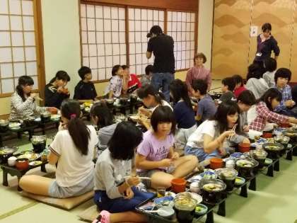 みんなと食べる夕食,きっと格別の味だと思います。お腹がいっぱいになった後は・・・この後の子どもたちの様子は,明日の朝からまたホームページでお知らせしたいと思います。(大藪小学校からホームページを更新しているため,ご了承ください。)今晩は,ドキドキ,わくわく,枕を並べて色々な話をして,なかなか寝れないかな?でも,明日に向けてしっかり寝てほしいなとも思います。まだまだ夜は長いかもしれませんが,おやすみなさい。