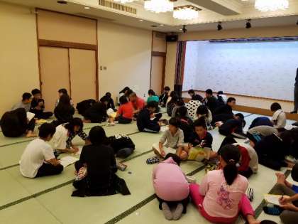 レクリエーション大会の後,各班で,1日の振り返りをして,就寝です。この後,みんなしっかり寝ることができたのでしょうか?