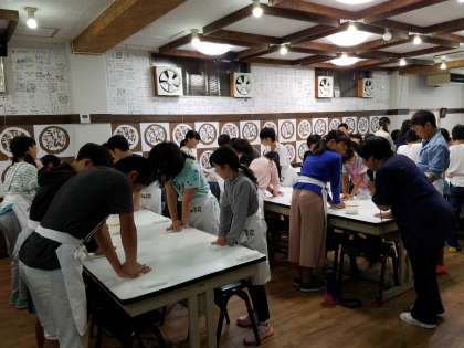 真剣な表情でうどん(おみやげ)作り〜中野うどん学校にてその2〜