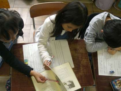 国語科の学習で「お手紙」の作者のアーノルド=ローベルの「ふたりはシリーズ」から自分の好きなお話を選び,音読劇をするという学習を行っています。