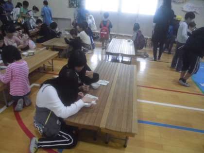 毎年恒例の「文庫まつり」が盛大に行われ,多くの1年生〜6年生,さらには卒業生の姿まで見ることができました。子どもたちは,体育館の中に準備された様々なブースで物作りや遊びを楽しんでいました。来賓の方があいさつの中で,久世では毎年,当たり前のように行われているこの「文庫まつり」も南区で続いているのは,久世だけという話をされていました。久世地域の大人達の子どもたちへの温かく優しい気持ちが,このような形で40年以上も続けられていることは,大変価値のあることだと思います。今日のために,準備を進めてこられた役員,地域の皆様,本当にありがとうございました。更に来週は久世西小学校の体育館で,「親子で楽しむつどい」が行われます。少し,対象年齢は下がりますが,こちらの行事にも,たくさん参加していただければと思います。