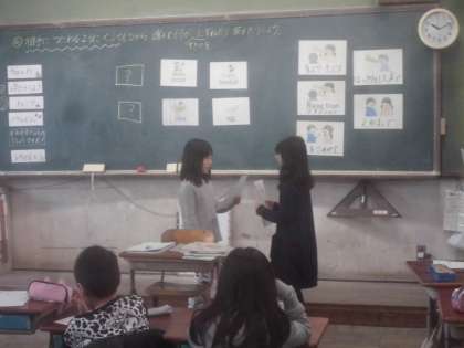 外国語活動の学習で,What do you like? I like 〜. 友達同士でやりとりをする子どもたち。笑顔溢れる素敵な授業でした。