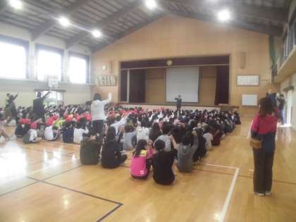 持久走記録会の開会式が行われました。みんなで,「エイエイ!オー!」と気合いを入れました。この後,各学年がスタートしていきますが,今後の天候により,途中の学年から延期となる可能性もあります。ご了承ください。その場合は,決定し次第,ホームページやメール配信でお知らせします。
