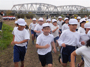 今日は,久世橋東詰の河川敷で持久走記録会が行われました。