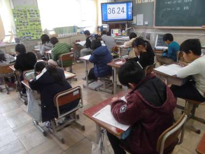 冬休みやこれまでの学習の成果を発揮しようと,子どもたちは一生懸命テストに取り組んでいました。