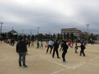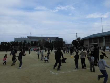 今日は久世西小学校で,両校合同の親子ドッジボール大会がありました。寒い日でしたが,みんな元気にボールを投げたり逃げたりしていました。