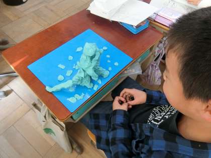 粘土のかたまりから腕や足をつまみ出す練習をしました。