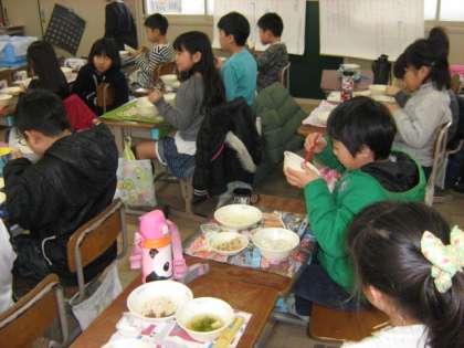 「どんな味?」という声がたくさん聞かれましたが,一口食べてみると「おいしい!!」という反応が!花菜のすまし汁と味がしっかりしている牛肉のごぼうの煮つけとおいしくいただきました。