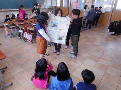 4年生 2年生に大豆のひみつを発表しました