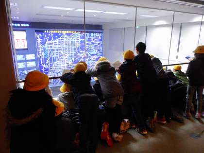 動画で京都府警の仕事を学んだあとは,交通管制センターを見学しました。