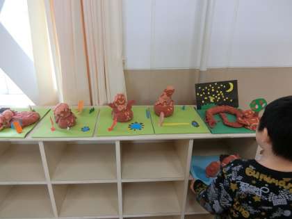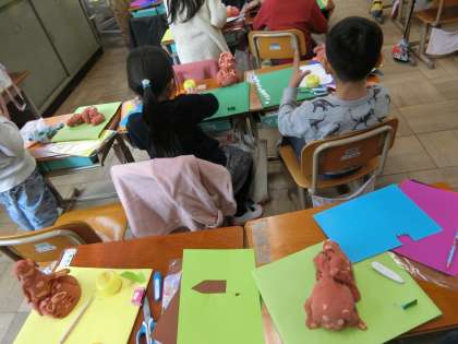 図工の学習で造形紙を使って,お散歩する庭や街をつくりました。