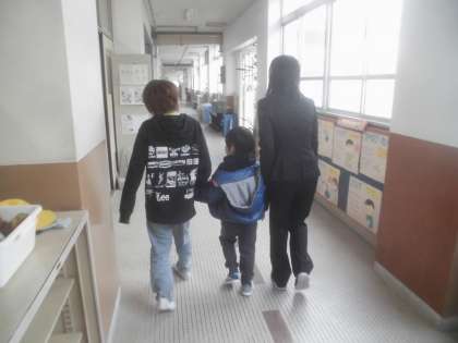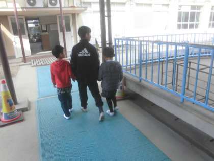本日の半日入学では,就学時健康診断に引き続き,来年度最高学年となる5年生が大活躍!とても優しい後ろ姿です。