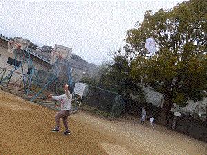 自分で絵を描いた世界でひとつだけのたこを,運動場であげました。曇り空でしたが,走ると少し揚がるたこに大喜び。いっぱい走って疲れたけれど,揚げることができて大満足の様子でした。