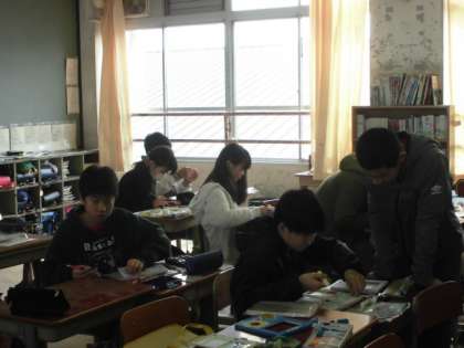 日本国憲法についての学習では,資料を一生懸命に調べています。中学校での学習につながる大事な学習です。