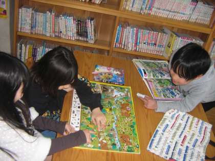 図書室では,図書館司書の先生に読み聞かせをしてもらいました。今日はとっても絵がかわいい絵本を読んでもらいました。そのあとは,好きな本を思い思いに読んでいました。