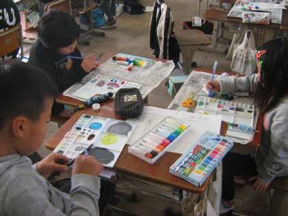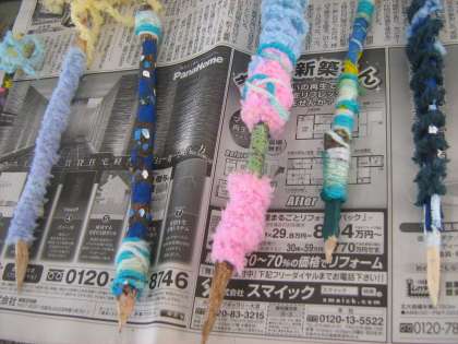 小刀で一生懸命削った自分だけのオリジナルペンに絵の具や毛糸で飾り付けをしました。小筆を使って細かい作業までできるようになりました。
