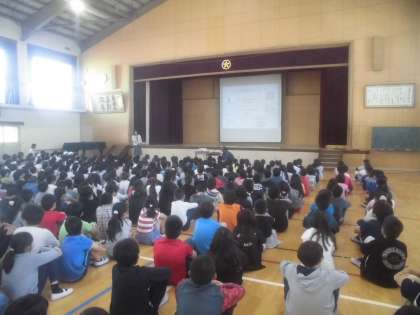 5月7日(火)5月の朝会を行いました。5月は「憲法月間」ということで,校長先生の話から,みんなが毎日かぶって登校する「黄帽」を通して,身近なルールを守ることの大切さについて考えました。ルールを仕方ないから守るのではなく,ルールを守ることの心地よさを感じ,そのことが当たり前となってほしいなと思います。