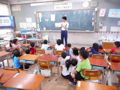 昨日4日から4日間,中学2年生がチャレンジ体験で小学校にやってきています。