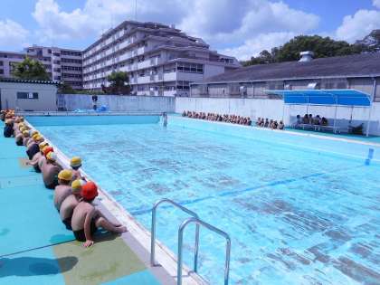 プールの入り方やルールなどをしっかりと学習し,少しずつ水に慣れてきました。