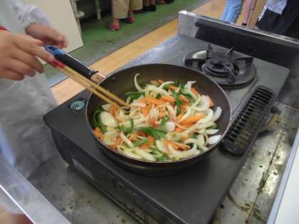 昨日,2組が調理実習で「いろどりいため」を作りました。