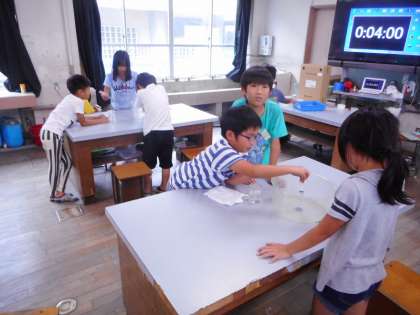 実験の結果,水が全く押せず,体積が変わらないことに子どもたちは驚いていました。