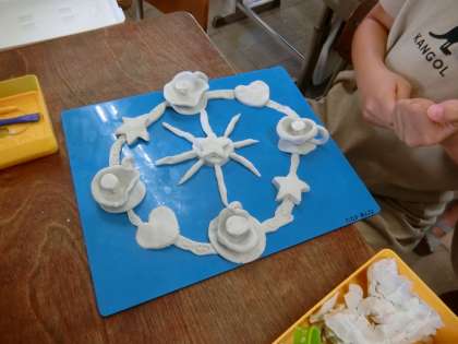 粘土を使って,想像した自分のまちを作りました。