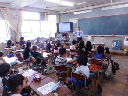 本日は,京都府警より警察官の方に来ていただき「非行防止教室」を行いました。窃盗やいじめ等について,知っておきたいことや役に立つことを教えていただきました。子どもたちも自分事として,真剣に考えていました。