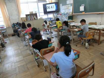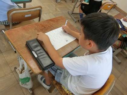 今日は覚えた漢字の小テストをしました。1字1字丁寧に書き,とめやはらい,書き順にも気を付けながら覚えて欲しいと思います。