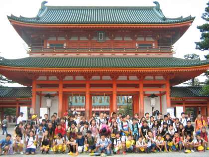 今日は,社会見学・演劇鑑賞に行きました。お天気の中,電車を乗り継ぎ,まず平安神宮へ向かいました。初めて実際に見て,大きな鳥居に驚いている子もいました。