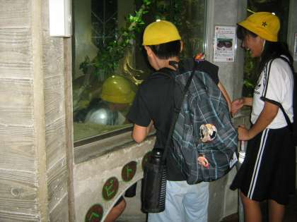 しばらくすると晴れ間が見えてきたので,いろいろな動物を見て,ロームシアターへ出発しました。保護者の方に作っていただいたお弁当を食べて,子どもたちの足取りも軽くなりました!朝早くから,お弁当のご準備,ありがとうございました。