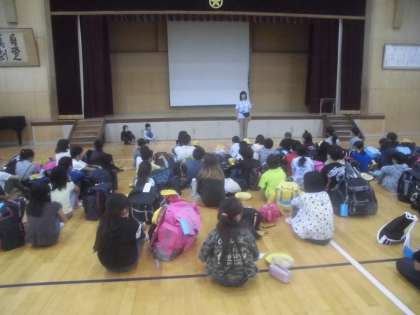 いよいよ本日から,4年生は小学校生活最初の宿泊学習,2泊3日「みさきの家」での野外活動,69名全員が揃ってのスタートです。出発式の進行も自分たちでしっかりやり遂げました。3日間で,仲間と一緒に様々なことを経験し,成長し,たくさんの思い出を作って,戻ってきてほしいと思います。保護者の皆様,本日の出発に向けて多くのご準備,そして朝早くからのお見送り,本当にありがとうございました。