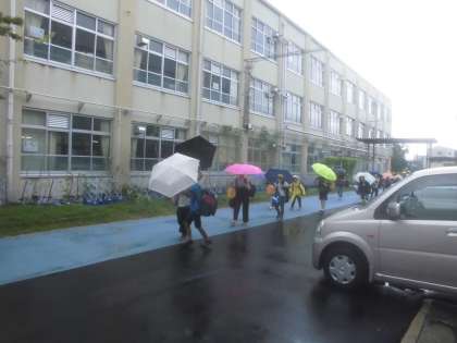 少し,雨がパラパラと降る中ですが,元気よく出発です。今後,天気が回復してくれることを願っています。