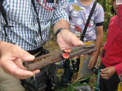 きのこは全部で4種類発見。カエンダケなどの危険なキノコについても教えていただきました。
