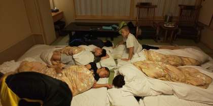 たくさんのことに出会い,経験し,みんなで楽しみ,疲れたのか,子ども達はぐっすり寝ていました。遅くまで話し込んでいる子たちもいたようですが・・・。お互いの仲も深まった一日目の夜でした。