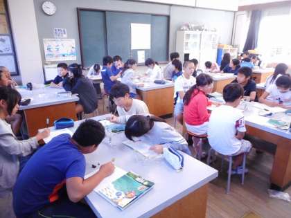 危険な薬品を使うため,子どもたちもとても真剣に取り組みました。