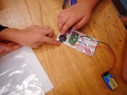 工房学習では,センサーを使った信号機を作製しました。