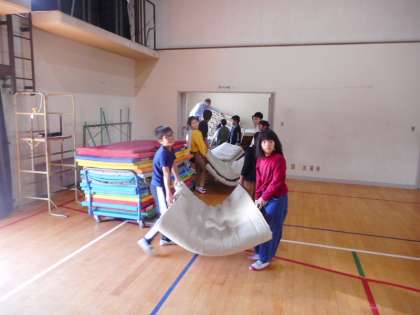 学芸会が終わった後,片付けをしてくれたのは5年生です。