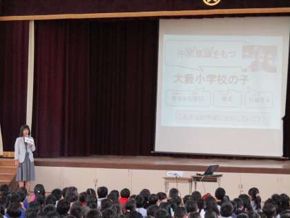 11月5日(月)に朝会を行いました。学校長より,学芸会での各学年の発表の中に,「仲間とともに」頑張る姿がたくさんが見られ,これからの学校生活でも大切にしていこうとの話がありました。大薮小学校の学校教育目標にもある「仲間意識」を,学芸会だけでなく,これからの学習など様々な活動の中でも,ともに高め合える関係を築いてほしいと思います。