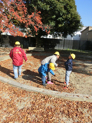 今日はお誕生日会で,中久世公園へ秋を見つけに行きました。木の葉が赤や黄色に色づく中,鬼ごっこをしたり,シーソーやぶらんこで遊んだり,楽しい時間を過ごしました。