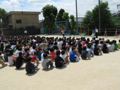 本日,避難訓練がありました。東日本大震災が記憶に新しい中,事前に各学級で指導し,いよいよ避難という事になりました。「おはしもて」の約束をしっかり守り,みんな真剣に訓練に参加していました。避難時間は4分30秒でした。