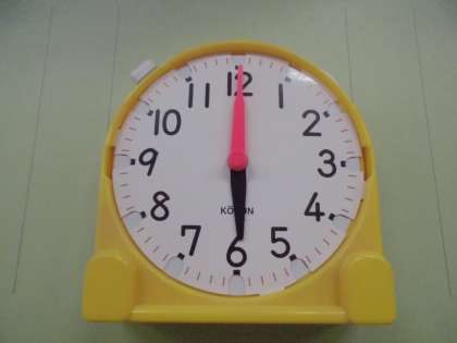 『先生は きょうのあさ6じにおきました。それから 学校へいくじゅんびをして 7じはんに いえを出ました。おきてから いえを出るまでのじかんは どれだけですか。』
