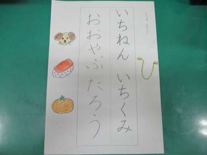 なまえを ていねいに かいて すきなものの えを かきます。