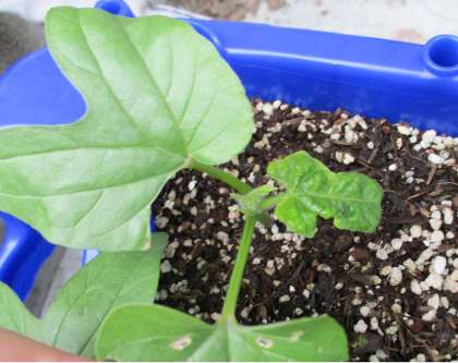このあいだ あさがおが きゅうくつそうに していたので まびきを しました。